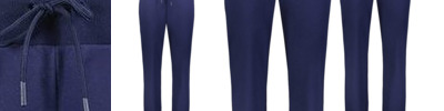 - Tapered leg with flat front hem covered elastic at back hem