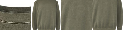 - Ribbed-knit crew neck collar with V-stitching at neckline