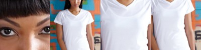 • Capped sleeves with a solid color rib neck trim